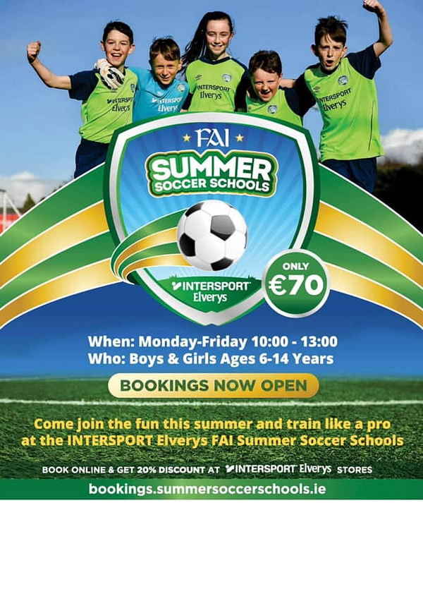 Bookings can be made on https://bookings.summersoccerschools.ie/s/camp-list